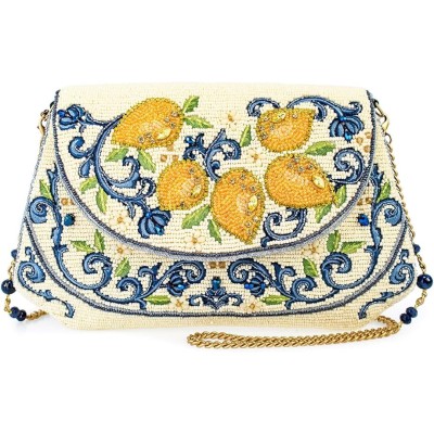 Cape strung with lemons, a vibrant fruit embroidered handbag for dinner parties in multiple colors